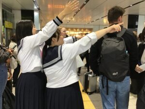 緊張しながら声を掛ける生徒、物おじせず積極的に活動する生徒、