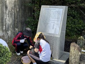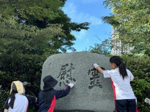 本日、中高生徒会役員の10名と一緒に、慰霊碑清掃を行いました。