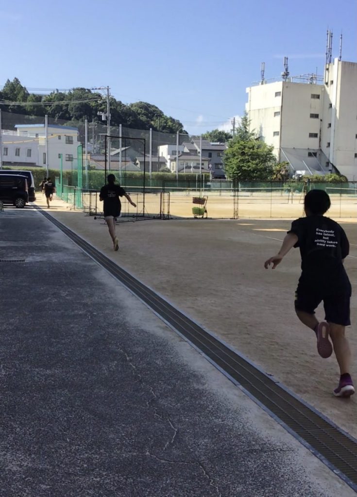 本日の短距離はアップ後100mRun+100mJogでした。ここ最近は他のメニューとの兼ね合いで100mRun+100mJogを3本で行うことが多かったのですが、本日は5本といつもより多い本数で行いました。それに加え、夏のじりじりと照りつける太陽に、じわじわと体力を削られます。そのせいか100mRun+100mJogが終わったあと、選手たちは普段より少し疲れた様子でした。それでも自身の状態やフォームの確認をしながら走ることができたのではないでしょうか。