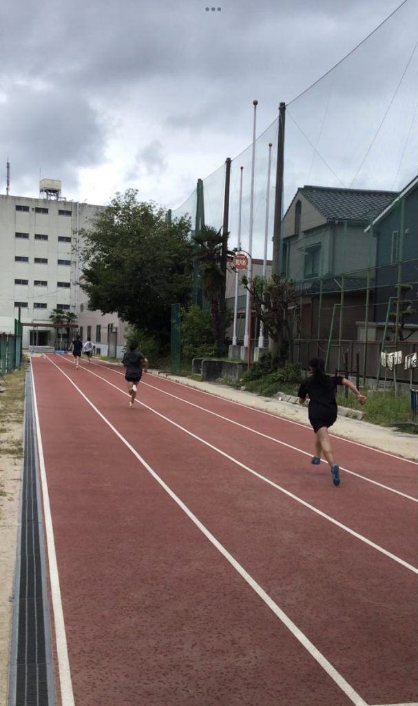 本日の短距離はいつも通りアップを行い、50mのスキップ流しを3本行いました。