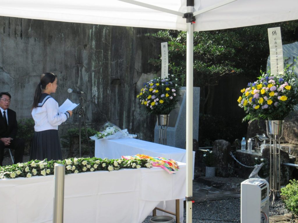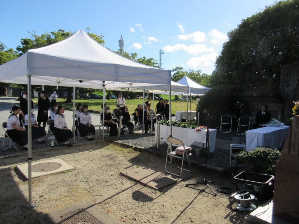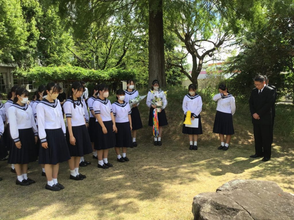 本校では毎年,生徒会が主体となって,中国軍管区司令部跡にある慰霊碑で,8月6日に原爆死没者追悼式を行います。