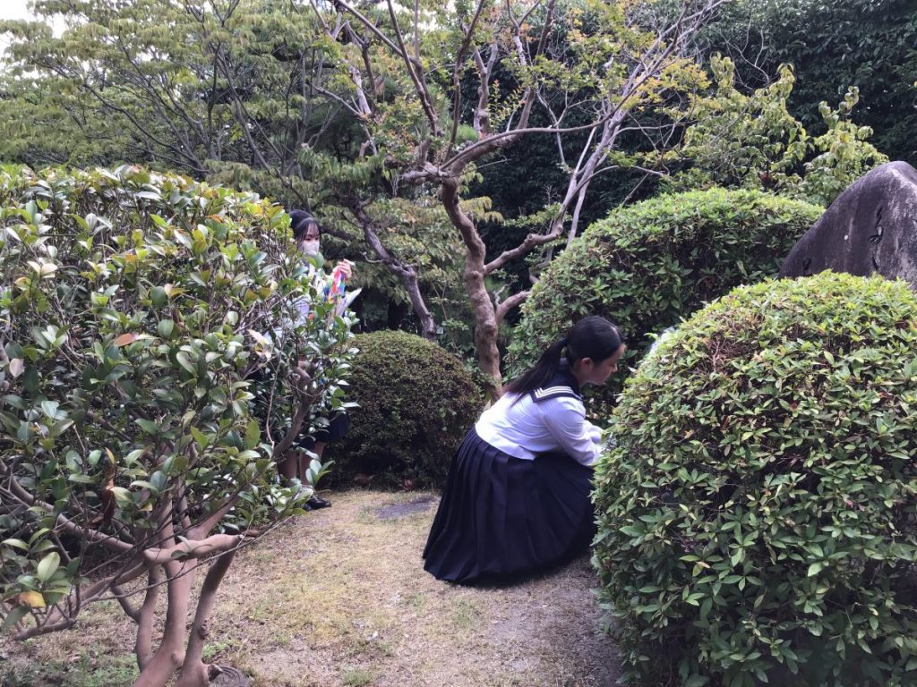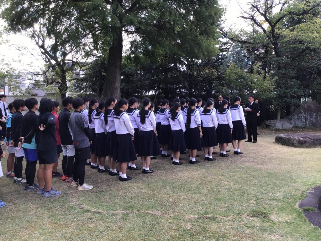瞑想の森の追悼式には,生徒会の生徒だけでなく,部活動で登校していた生徒も参加しました。