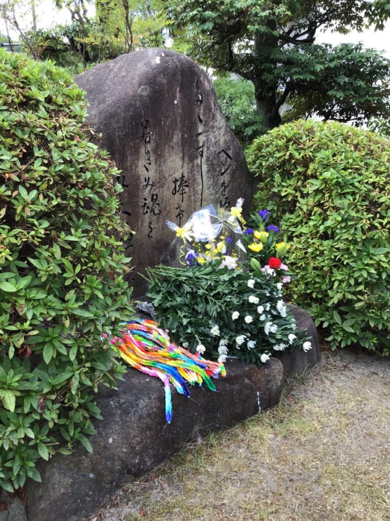 また,その後本校の「瞑想の森」の慰霊碑でも追悼式を執り行い,献花を行います。
